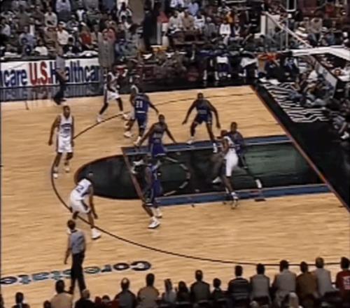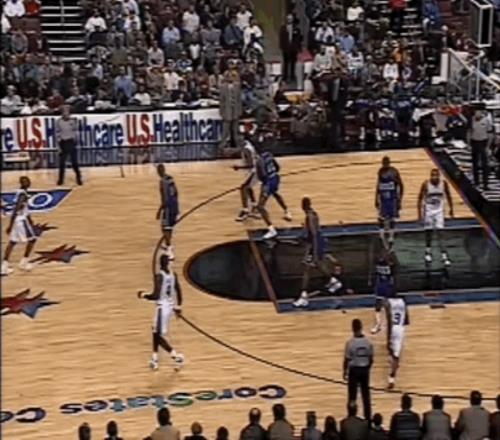 湖人球员尼克-范埃克塞尔在采访中表示,艾弗森有他见过最棒的体前变向动作。这一动作日后晃过了无数防守者,而那一球,正是它在NBA的首次惊艳登场。